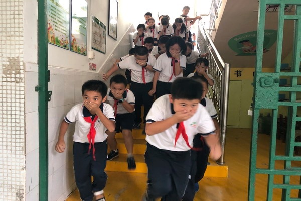 隨著警報(bào)響起,各個(gè)班級(jí)正副班主任迅速按照要求指揮全體同學(xué)根據(jù)規(guī)劃好的最優(yōu)路線進(jìn)行逃生,整個(gè)過(guò)程,要求學(xué)生保持警惕,用濕手巾捂住口鼻,安靜快速撤離課室。到達(dá)臨時(shí)集合點(diǎn)后,各班班主任立即清點(diǎn)人數(shù)并在微信群向各年級(jí)組長(zhǎng)匯報(bào)安全到達(dá)人數(shù)。學(xué)??倓?wù)處吳結(jié)紅主任對(duì)本次活動(dòng)同學(xué)們的表現(xiàn)給予肯定,同時(shí)指出本次演練學(xué)生存在的問題并再次強(qiáng)調(diào)了疏散的要求:在逃生過(guò)程中,一部分學(xué)生沒有按要求進(jìn)行疏散,到達(dá)平地要快步走而不是快跑,到達(dá)空地要保持安靜,聽從安排。之后吳主任結(jié)合國(guó)慶節(jié)放假通知對(duì)學(xué)生進(jìn)行安全教育。警報(bào)解除后,各班有序進(jìn)行常規(guī)教學(xué)工作,演練圓滿結(jié)束。