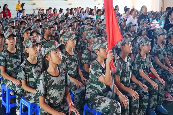 開營儀式上,上屆五年級的孩子們、負責訓練的教官們分別展示戰(zhàn)術操槍、五步拳以及擒拿拳、軍體拳等技能和拳術,精彩的表演贏得了陣陣掌聲。教官代表還帶領全體參訓學生進行了入營宣誓。鄧健強常務副主任在最后的總結講話中,鼓勵孩子們繼往開來、勇當重任,在學習鍛煉中茁壯成長;希望林東小學借助自身優(yōu)勢,多總結推廣有益經(jīng)驗,發(fā)揮好坦洲鎮(zhèn)在全市國防教育中的示范引領作用。