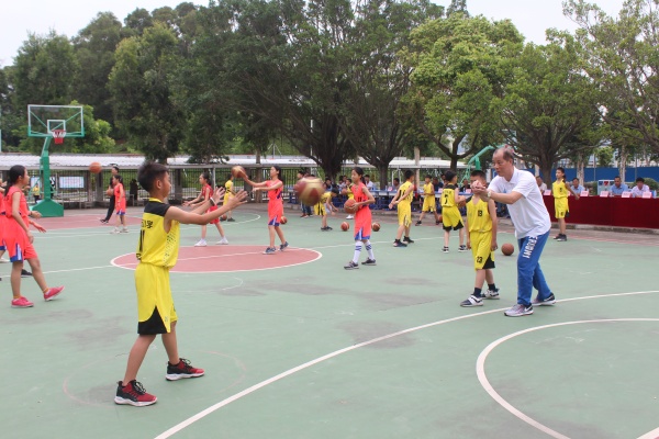 接著是專家引領(lǐng)環(huán)節(jié):由中國國家級籃球運(yùn)動健將,原廣東男籃主力球員、神射手兼隊(duì)長,現(xiàn)任深圳市籃協(xié)專職副主席高楚雄校友對前進(jìn)小學(xué)籃球隊(duì)隊(duì)員進(jìn)行專業(yè)籃球技術(shù)指導(dǎo)。他詳細(xì)講解了雙手原地傳球和投籃動作的技術(shù)要領(lǐng),強(qiáng)調(diào)標(biāo)準(zhǔn)的傳球和投籃動作的重要性,勉勵全體隊(duì)員要認(rèn)真、扎實(shí)的練習(xí)好技術(shù)動作,為競技籃球打下堅(jiān)實(shí)的基礎(chǔ)。