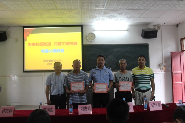 專題講座分三個(gè)環(huán)節(jié):首先,楊偉恩警官向師生詳細(xì)地介紹了“什么是校園欺凌”、“校園欺凌的主要行為”、“校園欺凌發(fā)生的信號”、“遇到校園欺凌的應(yīng)對辦法”等,他結(jié)合具體事例,生動闡述了近來發(fā)生的校園暴力事件帶來的危害和不良后果,提醒同學(xué)們提高法律意識和自我保護(hù)意識,學(xué)會利用溝通方式化解矛盾,拒絕與校外不良青年交往,用正確的處理方式應(yīng)對欺凌。接著,關(guān)工委劉志明和邱伙友兩位同志分別叮囑學(xué)生除了自己主動拒絕校園欺凌外,如發(fā)現(xiàn)同學(xué)受到欺凌時(shí)應(yīng)當(dāng)對被欺凌者伸出援手、提供幫助,及時(shí)向?qū)W校、老師報(bào)告,用自己的行動更好地杜絕校園欺凌事件的發(fā)生。最后,學(xué)校聘請他們?yōu)榍斑M(jìn)小學(xué)“預(yù)防校園欺凌校外輔導(dǎo)員”,并向他們頒發(fā)了聘書。郭炳森校長告誡全體同學(xué):要遵紀(jì)守法,做社會主義守法小公民,杜絕出格行為,不欺侮他人,大膽地對欺凌行為說不,特別是在面對欺凌時(shí),要學(xué)會向老師、家長、警察求助,確保自己在陽光下健康成長。