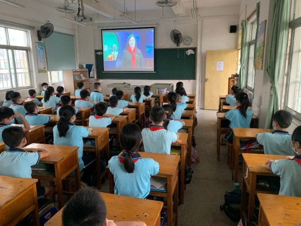 開學(xué)典禮后,學(xué)校組織了全體返校師生,觀看了《復(fù)學(xué)第一課》?!稄?fù)學(xué)第一課》由火炬開發(fā)區(qū)香暉園小學(xué)賴艷霞老師主講的班會(huì)課“天使歸來,英雄開講”。一幕幕畫面在眼前閃過,同學(xué)們深受感動(dòng),紛紛致敬這些時(shí)代最感動(dòng)的人。兩位奔赴湖北抗擊疫情的醫(yī)護(hù)人員向大家介紹自己的親身經(jīng)歷,并深情地向同學(xué)們寄予自己期盼“少年強(qiáng),則國(guó)強(qiáng)。”著重培養(yǎng)學(xué)生的家國(guó)情懷、民族自豪、責(zé)任意識(shí)、擔(dān)當(dāng)意識(shí)。