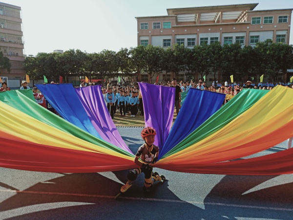 伴隨著清晨第一縷陽光,首先是,各班班級入場式表演。同學(xué)們穿著各式各樣的服裝,臉上洋溢著明媚的笑意。所有班級的表演各有千秋。表演中,有在動感十足的音樂下?lián)]舞著雙臂;有舉著國旗,在動人的《國旗飄飄》音樂中舞蹈;甚至還有以近期流行音樂《野狼Disco》為背景來跳舞。不止這些,我們還看到了火熱的拉丁舞者,亦或是抱著籃球的運(yùn)動健兒們……數(shù)不勝數(shù)。每一個班級的孩子們都發(fā)揮出最好的自我,展現(xiàn)的是曾經(jīng)的多次排練都未曾達(dá)到過的完美。前期的辛勤苦練,在這一天——這個重要的日子里,終于得到了回報。在這一天,同學(xué)們臉上喜悅的笑容,主席臺上的陣陣掌聲與歡呼聲更加的熠熠生輝。