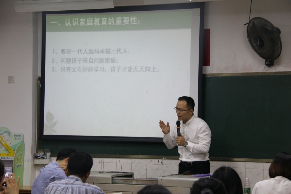會(huì)議第一講——家庭教育。這次家庭教育專題講座由國家家庭教育講師、東鳳鎮(zhèn)教育事務(wù)指導(dǎo)中心德育專干賴立章老師主講。賴?yán)蠋熅o貼時(shí)代脈搏,通過生動(dòng)的故事和鮮活的案例為家長們“把脈”,指出家長們在教育孩子中存在的誤區(qū),建議家長更新育兒觀念,對家長怎樣用心用智教育孩子方面進(jìn)行了詳細(xì)的講授,賴?yán)蠋熣J(rèn)為“以身作則、保持良好的婚姻關(guān)系、關(guān)心孩子的學(xué)習(xí)、關(guān)注孩子的生活習(xí)慣、注重教育孩子的方法”等方面對孩子的成長有著莫大的聯(lián)系。家長不但要做孩子的好伙伴、做孩子的好老師,更要學(xué)會(huì)賞識(shí)孩子的進(jìn)步,學(xué)會(huì)自我提高家教方法。