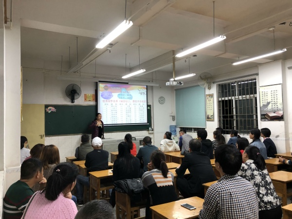 講堂活動伊始,德育主任麥滿棠老師做主題為《好習慣比學習成績更重要》的講話。麥主任充分利用多媒體網絡資料,借助中國青少年研究中心研究員孫云曉教授的網絡專題講座《習慣決定孩子的命運——學習習慣比考試成績更重要》,建議家長從長遠的角度來考慮孩子的發(fā)展,特別要重視孩子的學習習慣,因為學習習慣是一個人在學習中最穩(wěn)定、最具有持續(xù)發(fā)展的因素。其次,安全主任李秋嬋老師向家長普及了流感等傳染病防控的相關知識,要求家長與學校一起打好預防季節(jié)性傳染病攻堅戰(zhàn),為孩子的健康、平安保駕護航。活動最后進行了分班座談。老師們都紛紛提到了“最好的教育就是陪伴”,父母應該花有質量的時間,給孩子無條件的陪伴,和諧的親子關系才是孩子健康成長的力量源泉。這樣孩子的學習成績的提高才能水到渠成。