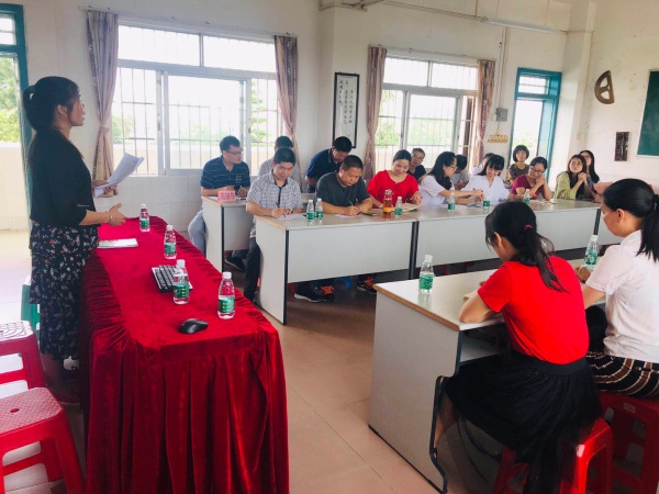 新合小學(xué)德育主任盧國慶向三校的領(lǐng)導(dǎo)和教師代表作了工作匯報(bào)。他主要把學(xué)校的特色項(xiàng)目——孝德教育,做了介紹。他說:“讀好孝之道的書,上好孝之道的課,講好孝之道的故事,演頌孝之道的?。ò研⒅廊谌朐姼枥收b之中進(jìn)行傳播),唱好孝之道的咸水歌;做孝之道的家庭作業(yè),邀請(qǐng)名師給家長進(jìn)行親子講座,讓雁陣飛來開展親子團(tuán)康。把孝之道走進(jìn)孩子的心靈,落實(shí)在行動(dòng)上?!敝蟠箨?duì)輔導(dǎo)員容甄彤就學(xué)校開展五項(xiàng)常規(guī)管理方面所做的工作作了匯報(bào)。她說:“工作應(yīng)該從細(xì)處入手,重在落實(shí)?!比堇蠋煹墓ぷ鞣浅L?shí),非常盡責(zé),受到了德育主任的高度肯定。