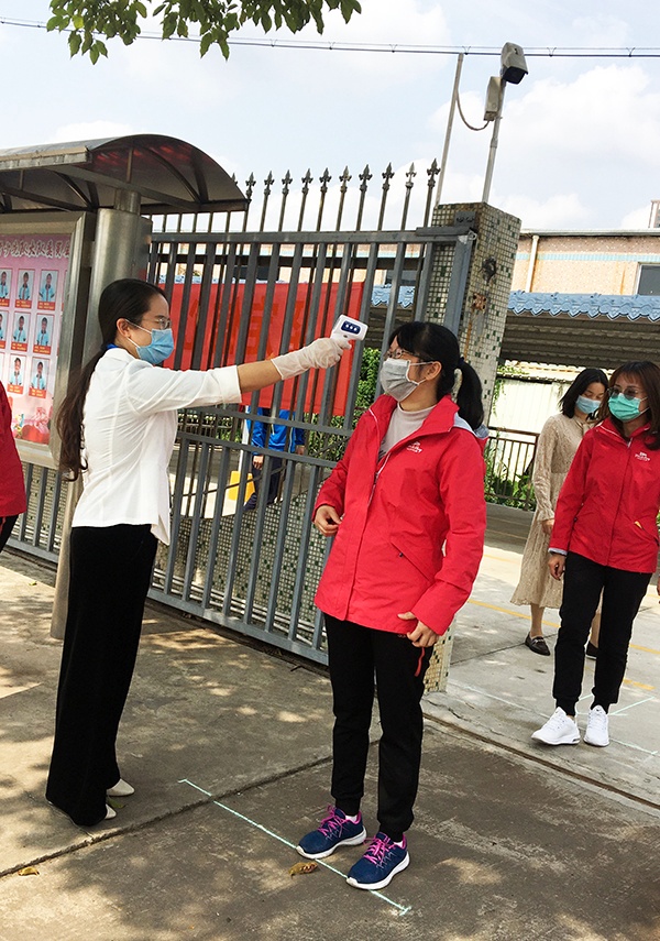 下午3:20,全體人員集中在教學(xué)樓前的空地,鄧文忠校長作了演練前的動員講話,明確本次演練的目的、要求和重要性。下午3:30,演練正式開始。此次演練活動內(nèi)容主要包括:學(xué)生入校體溫檢測、晨午檢落實、發(fā)現(xiàn)病例、詢問病情、病例隔離、啟動應(yīng)急預(yù)案。演練重點為上課期間發(fā)現(xiàn)病例應(yīng)急處理并上報環(huán)節(jié)。