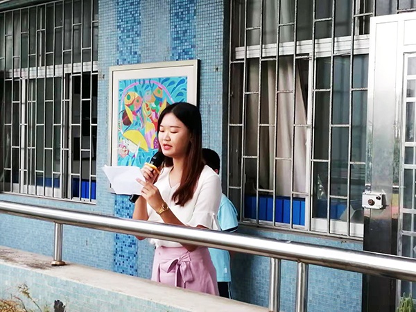 接著,黃樺主任向大家介紹本學期學校的新成員。劉熙琳老師作為新教師代表在開學典禮上發(fā)言。