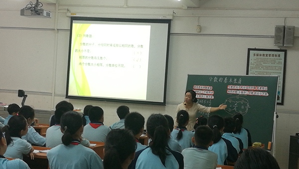 本次活動的第一環(huán)節(jié)由永一小學(xué)晏黎老師帶來《分數(shù)的基本性質(zhì)》的課堂展示。晏黎老師由找算式的不同為切口,讓學(xué)生大膽猜測,接著讓學(xué)生用方形紙、圓形紙和數(shù)軸等豐富的操作的材料來驗證這個等式,并讓學(xué)生觀察算式的變化,發(fā)現(xiàn)并概括分數(shù)的基本性質(zhì)。然后通過層層遞進的練習(xí)讓學(xué)生充分理解與應(yīng)用分數(shù)的基本性質(zhì)解決相關(guān)的問題,最后晏老師回歸原題,引出商不變的規(guī)律與分數(shù)基本性質(zhì)之間的聯(lián)系?;顒拥牡诙h(huán)節(jié)由晏黎老師根據(jù)本次活動的主題對本節(jié)課設(shè)計意圖進行說明,再由聽課的老師分組進行研討,聽課老師根據(jù)此次活動的主題充分的發(fā)表自己的看法,整體認為本節(jié)課執(zhí)教老師能以精練的數(shù)學(xué)語言、富有特色的教學(xué)風(fēng)格、展示數(shù)學(xué)課堂個性化設(shè)計的特殊魅力,并能有效運用《教學(xué)要義》提高教學(xué)效率。第三環(huán)節(jié)由教育事務(wù)指導(dǎo)中心教研員劉偉光老師總結(jié),劉老師指出教師必須要有責(zé)任感,加強研究教學(xué)要義,修煉教學(xué)基本功。要想提高課堂教學(xué)的有效性,教師就要認真研究教什么,怎么教,教到什么程度,怎樣構(gòu)建高效課堂有效環(huán)節(jié)等問題,并倡議全體教師要加強交流、共同發(fā)展,在自己的專業(yè)道路上灑下汗水,收獲成功。