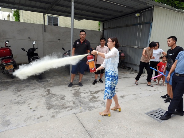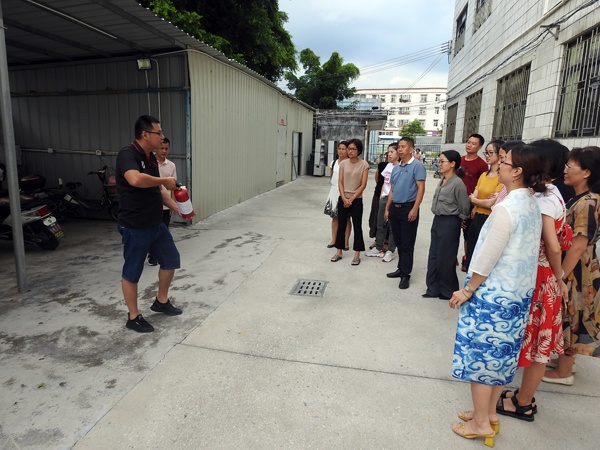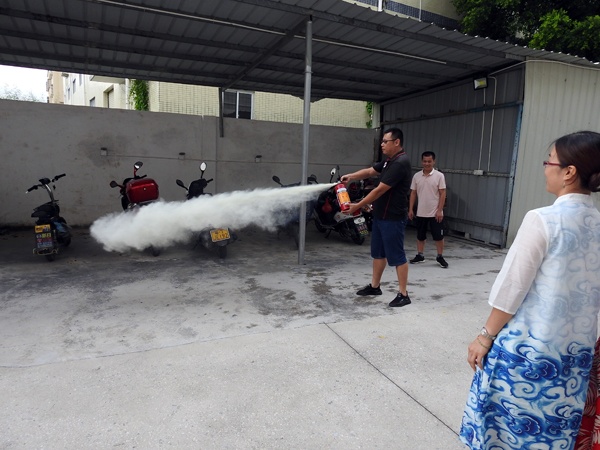 9月3日下午放學(xué)后,坦洲鎮(zhèn)永二小學(xué)全體教師集中教師電動車停放區(qū),舉行電動車充電火災(zāi)滅火演練。