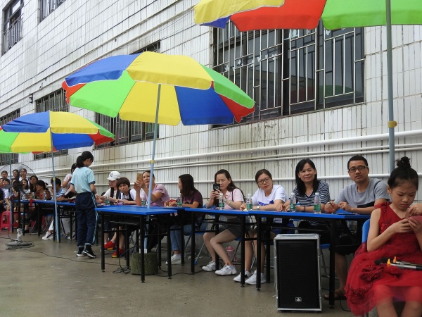 約9時許,隨著熟悉的運動員進行曲響起,坦洲鎮(zhèn)永二小學各班學生按秩序來到了教學樓后面的空地參加2019年的六一兒童節(jié)慶?;顒?。慶祝活動一共有20個,其中10個是班級參賽的節(jié)目,8個是在六一個人才藝節(jié)目招募中入選的表演節(jié)目,2個助演節(jié)目。這次的節(jié)目的表演形式多樣,有舞蹈,有小品,有樂器演奏,有歌唱,還有武術表演。從第一個節(jié)目《祖國的花朵》舞蹈表演開始,慶祝活動正式開始了。只見三(1)班的同學們用舞蹈的形式展現(xiàn)他們活潑可愛,茁壯成長的歷程。在隨后的各個節(jié)目表演中,上臺的每一位同學都竭盡所能,力爭做好每一個動作,唱準每一個音符,將最好的一面呈現(xiàn)給評委及觀眾。你看五(1)班表演的《應聘》小品,他們將一些應聘中出現(xiàn)的趣事,通過適當夸張的語言和肢體動作展示在同學的面前,時不時引發(fā)場下觀眾的捧腹大笑。在個人才藝展示節(jié)目里有架子鼓表演、鋼琴演奏、黃梅戲、拉丁舞、劍術表演等。通過表演,充分展示了坦洲鎮(zhèn)永二小學同學們學習之外的才能。精彩的節(jié)目可謂一個接一個,讓在場的師生家長應接不暇。最后,坦洲鎮(zhèn)永二小學民樂團及傳統(tǒng)文化項目詠春拳進行了表演,整個慶祝活動既展現(xiàn)了同學們的個人才藝,豐富的校園文化,又體現(xiàn)了學校傳統(tǒng)文化項目的發(fā)展。仿佛看到坦洲鎮(zhèn)永二小學同學們的精彩演出,久違的太陽也出現(xiàn)了。經過2個多小時的角逐,最后四(2)班和五(1)班表演的節(jié)目獲得了一等獎;二(1)班、二(2)班、一(1)班獲得了二等獎;一(2)班、三(1)班、三(2)班、四(1)班、六(1)班獲得了三等獎。