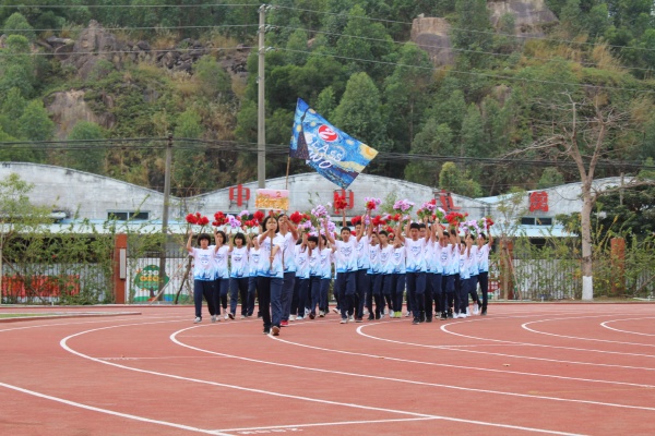 開幕式上,伴隨著激昂的運動員進行曲,國旗隊、校旗隊、校訓(xùn)隊方陣,邁著矯健的步伐,漾著自信的笑容,莊嚴(yán)地護送著五星紅旗和校旗、校訓(xùn)首先進入會場。緊隨其后的是鮮花隊、彩旗隊,他們手持鮮艷的花束、緊握飄揚的彩旗,將煥然一新的運動場裝點得更加亮麗多姿。接下來依次入場的是各具特色的班級方陣,他們在班主任的帶領(lǐng)下,邁著整齊的步伐、喊著響亮的口號,精神飽滿的接受校領(lǐng)導(dǎo)們的檢閱。主席臺前,他們用豐富多彩又極具創(chuàng)意的歌舞、口號展現(xiàn)班級的青春風(fēng)采和班級文化。最后出場的是意氣風(fēng)發(fā)的教師裁判方隊,他們微笑著向會場揮手致意。