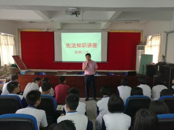 自12月4日國家《憲法》日以來,坦洲三中積極推進(jìn)憲法宣傳工作,在全校大力弘揚憲法精神,通過課堂講授、觀看視頻、宣傳小冊、主題班會等多種形式開展一系列憲法宣傳活動,增強(qiáng)廣大師生的憲法意識。2019年4月17日,坦洲三中邀請學(xué)校的法律顧問范華勝律師,為該校師生送去一場法制教育宣傳講座,坦洲三中初一、初二年級全體師生參加了此次講座。