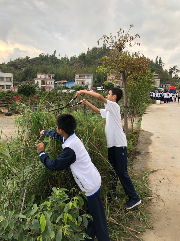 接著,初一年級(jí)同學(xué)便有秩序、按小組拿好工具開(kāi)始了勞動(dòng)。春日暖陽(yáng),照射出了老師和同學(xué)們的干勁,大家都積極、熱情地投入到除草活動(dòng)中。除草的地點(diǎn)在校園外路邊,雜草叢生,荊棘遍地,同學(xué)們面對(duì)這種場(chǎng)景,絲毫沒(méi)有畏難情緒,真正顯示出了吃苦耐勞的志愿者精神。一場(chǎng)酣暢淋漓的除草勞動(dòng),有的用剪刀、有的用鏟子、有的用鉗子,還有更多的同學(xué)徒手拔草,每位同學(xué)都配合得相當(dāng)默契,充分發(fā)揮了團(tuán)結(jié)、互助,友愛(ài)的志愿者精神。