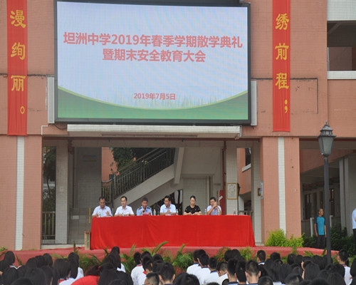 為了提高暑假期間學生的安全防范意識,確保其人身安全,使全體師生過上一個平安、快樂的暑假,2019年7月5日上午,坦洲中學舉行了2018-2019學年下學期散學典禮暨暑假安全教育大會。會議由學校德育處梁炳光主任主持,全校師生參加了此次大會。