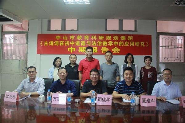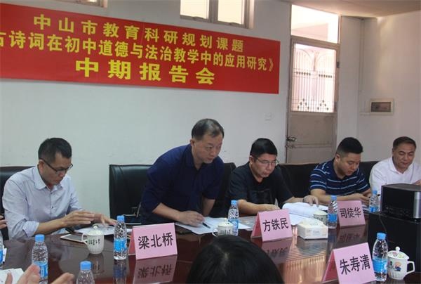 2019年11月18日下午,中山市坦洲實驗中學行政三樓會議高朋滿座,中山市教研室教研員方鐵民、夏建軍、司徒華齊聚中山最南端的邊陲小鎮(zhèn),為該校2018年市級立項課題《古詩詞在道德與法治教學中的應用研究》進行中期檢查驗收。坦洲實驗中學校長梁格青、教學副校長高艷玲等領(lǐng)導,以及該課題的全體成員出席了中期報告會。