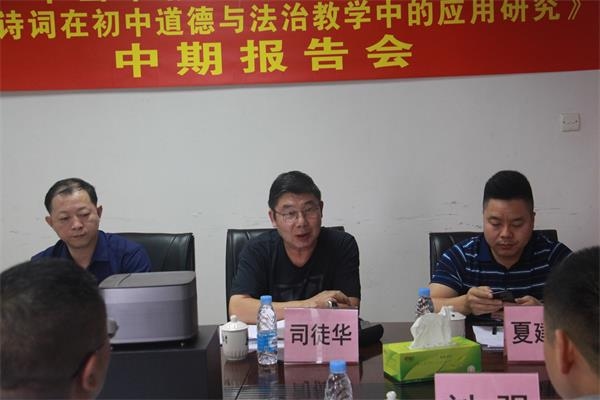 中期報告會由課題負責人朱壽清老師主持。課題組長劉強老師作《<古詩詞在道德與法治教學中的應用研究>中期報告》,他從課題的基本情況、主要進展、主要成果、存在的主要問題和下一步研究設想等方面,向各位專家作了匯報,并提請專家診斷把脈。