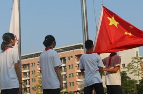 上午8時(shí),在激昂雄壯的義勇軍進(jìn)行曲中,鮮艷的五星紅旗徐徐升起,在晨風(fēng)中高高飄揚(yáng)。全校2300多名師生正裝肅立,向國旗行注目禮,高唱國歌,以這種莊嚴(yán)神圣的方式表達(dá)對偉大祖國的崇敬和熱愛之情,為偉大祖國送上深情祝福。