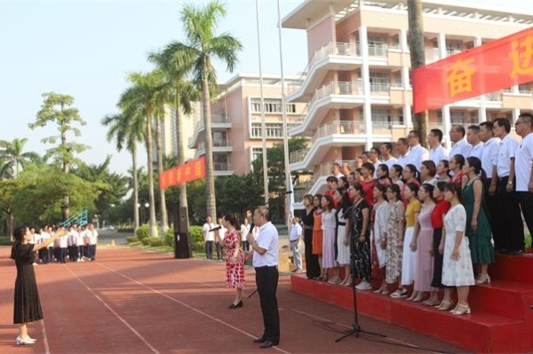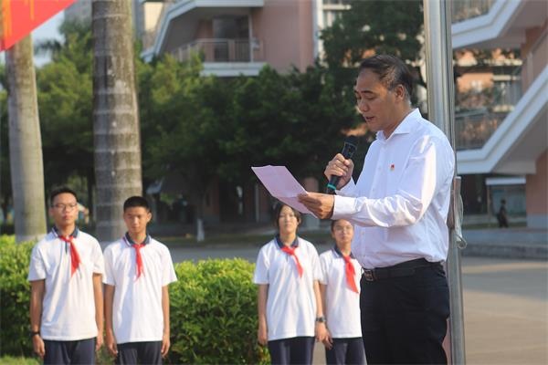 學(xué)校黨支部書記、校長梁格青在國旗下做主題講話,回望新中國歷史,70年風(fēng)雨兼程,70年砥礪奮進(jìn),70年接續(xù)奮斗,在中國共產(chǎn)黨的領(lǐng)導(dǎo)下,中華民族迎來了從站起來、富起來到強(qiáng)起來的偉大飛躍,中華大地發(fā)生了翻天覆地的歷史性巨變。梁校長寄語同學(xué)們立志報(bào)國,將自己的“青春夢”與“中國夢”相結(jié)合,投身偉大祖國建設(shè),創(chuàng)造更多更大的輝煌。