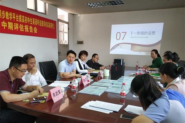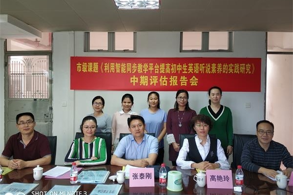 11月20日下午,坦洲鎮(zhèn)實(shí)驗(yàn)中學(xué)市級(jí)教育科研立項(xiàng)課題《利用智能同步教學(xué)平臺(tái)提高初中生英語(yǔ)聽(tīng)說(shuō)素養(yǎng)的實(shí)踐研究》的中期評(píng)估報(bào)告會(huì)在學(xué)校行政樓三樓會(huì)議室順利召開(kāi)。本次報(bào)告會(huì)得到市、鎮(zhèn)專家及領(lǐng)導(dǎo)的大力支持,中山市教育教學(xué)研究室張?zhí)﹦偫蠋?、坦洲?zhèn)課題服務(wù)組成員高艷玲副校長(zhǎng)、杜超主任蒞臨指導(dǎo)。參加報(bào)告會(huì)的還有坦洲實(shí)驗(yàn)中學(xué)梁格青校長(zhǎng)和英語(yǔ)課題組全體成員。