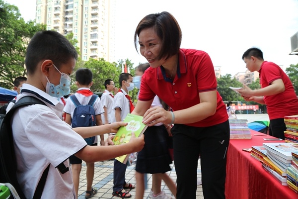 清晨,由中山紅塔黨支部為匯翠學(xué)子準(zhǔn)備的六一禮物——圖書,盡情散發(fā)著書香,此時(shí),人頭攢動(dòng),書伴隨著同學(xué)們飛舞,整個(gè)校園浸潤(rùn)在書香中。