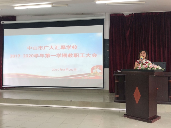 ——中山市廣大匯翠學校召開2019-2020學年第一學期教職工大會發(fā)布時間:2019-08-29 11:06 信息來源:本網站 瀏覽次數(shù):21