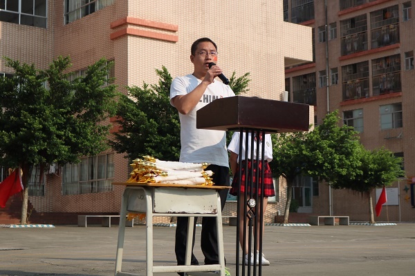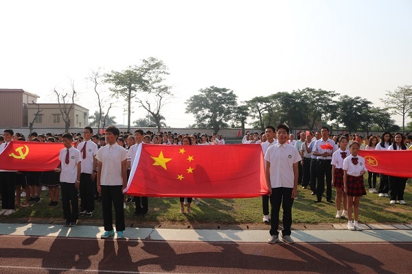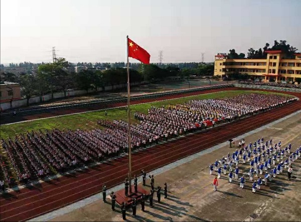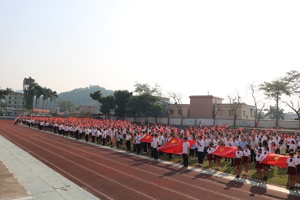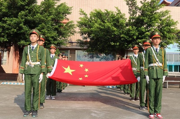 活動(dòng)在一陣美妙的奏樂聲中開始,鼓號(hào)隊(duì)穿著盛裝排著整齊的隊(duì)伍,用最熱情洋溢的節(jié)拍迎接國(guó)旗護(hù)衛(wèi)隊(duì)的閃亮登場(chǎng),旗手們精神抖擻、神采飛揚(yáng),邁著整齊的步伐向我們走來了,在雄壯的國(guó)歌聲中,國(guó)旗緩緩升起,師生們熱情高漲......全校近3000名師生員工一起高呼吶喊“祖國(guó)萬歲!”“祖國(guó)萬歲!”,聲音響徹云霄。何偉華副校長(zhǎng)做主題講話,他慷慨激昂、滿懷深情的講述了中國(guó)如何歷經(jīng)磨難和屈辱,一路從泥濘黑暗中走來,走向光明和富強(qiáng)!走到了今天中華人民共和國(guó)成立70周年,真正的給師生們上了一節(jié)生動(dòng)的思想政治課。何副校長(zhǎng)最后告誡同學(xué)們:“不忘國(guó)恥,奮力拼搏!不忘初心,牢記使命!少年強(qiáng)則國(guó)強(qiáng)!我們要愛國(guó)敬業(yè),爭(zhēng)做有為的新一代!”。接著是“文明班級(jí)”、“雅行之星”頒獎(jiǎng)儀式,同學(xué)們收獲了滿滿的成就感;最后,張榮炬主任強(qiáng)調(diào)國(guó)慶長(zhǎng)假的安全要求,他要求同學(xué)們時(shí)候樹立安全第一的思想,結(jié)合日常生活實(shí)際,從各方面提出了注意事項(xiàng)和具體要求,確保師生們度過一個(gè)愉快安全的假期。