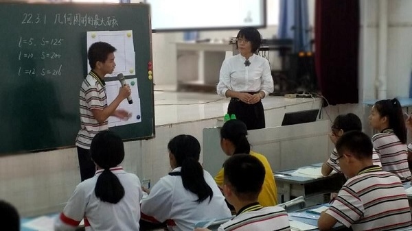 高艷玲老師當(dāng)節(jié)課教學(xué)的是初中三年級(jí)數(shù)學(xué)《幾何圖形的最大面積》,整節(jié)課包括回顧思考、合作交流、拓廣探索、方法歸納、課堂總結(jié)等幾個(gè)環(huán)節(jié)。課堂教學(xué)過程環(huán)環(huán)相扣、逐步推進(jìn),通過充分的師生互動(dòng)、生生互動(dòng),構(gòu)建了一個(gè)平等自由的對(duì)話平臺(tái),全班學(xué)生處于積極、活躍、自由的學(xué)習(xí)狀態(tài)。課堂上,教師通過設(shè)置巧妙的數(shù)學(xué)情境和課堂問題,充分調(diào)動(dòng)學(xué)生的學(xué)習(xí)積極性和主動(dòng)性,學(xué)生在合作交流中充分地表達(dá)、爭(zhēng)辯,很好地鍛煉了創(chuàng)新思維能力,學(xué)生真正成為課堂的主體,積極參與到教與學(xué)的互動(dòng)過程中來,并在這個(gè)過程中實(shí)現(xiàn)知識(shí)和能力的雙豐收。