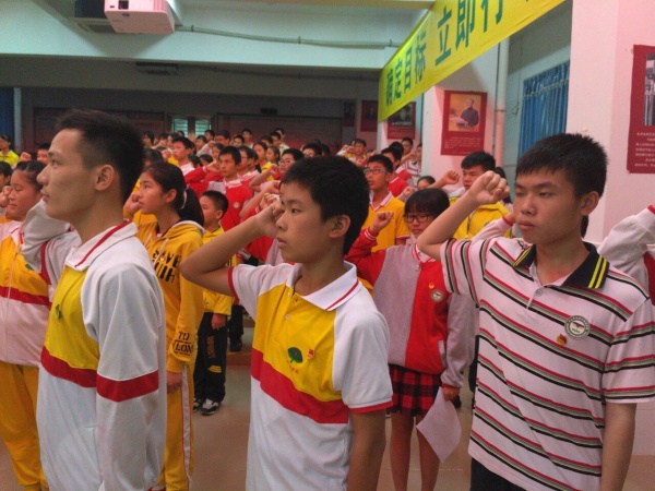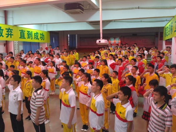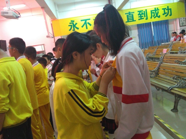 活動在莊嚴的國歌聲中儀式拉開了帷幕。隨后初中部鄧財秀主任宣讀了新加入中國共產(chǎn)主義青年團團員名單并由老團員給新團員們頒發(fā)佩戴共青團團徽,并落實了團徽的標準佩戴要求。當佩戴上團徽的那一刻起,他們正式成為一名光榮的共青團員。