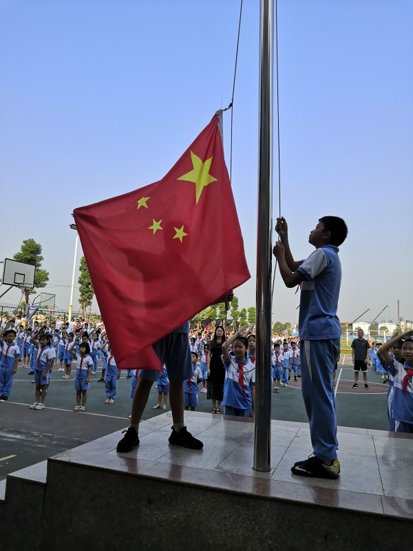 “咚!咚!咚”鼓號隊響起,護旗手把鮮紅的五星紅旗送到升旗臺前,隨著全校師生響亮的《國歌》聲徐徐升起,“起來!不愿做奴隸的人們……前進!前進!前進進!”今天的五星紅旗格外明艷,今天的國歌聲音特別響亮,同學們用自豪的聲音向國旗敬禮。國旗下活動中,五(2)中隊《少年強則國強國》的精彩朗誦表演,好像說出了同學們的心聲,贏得了一片熱烈的掌聲。大隊部還給同學們布置了國慶假期間觀看一部愛國電影、創(chuàng)意國話繪畫及攝影作業(yè),希望每一位同學都以祖國為榮,以中國為驕傲。