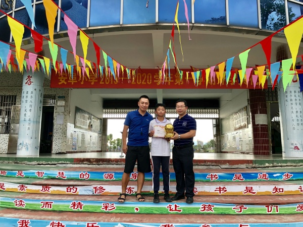 開學(xué)典禮上還舉行了隆重的頒獎(jiǎng)儀式,為取得“寶福杯”少年書法比賽三等獎(jiǎng)的呂靖同學(xué)和在中山市青少年校園足球夏令營(yíng)中取得優(yōu)異的成績(jī)的同學(xué)進(jìn)行了頒獎(jiǎng),表彰他們?nèi)〉玫膬?yōu)異成績(jī),希望他們?cè)俳釉賲?,并激?lì)全體同學(xué)向表彰的同學(xué)學(xué)習(xí),爭(zhēng)取新學(xué)期取得更大的進(jìn)步!