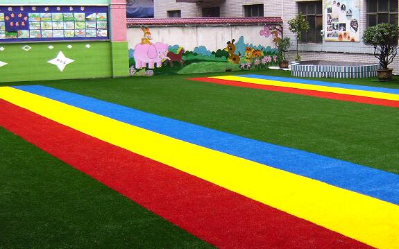 幼兒園草坪是休閑草坪的一項(xiàng)重要分支,除了必須具有一般休閑草坪的優(yōu)勢(shì)以外,針對(duì)服務(wù)對(duì)象是幼兒園、兒童的這一群體特性,還需要更加具有美觀性和趣味性的特點(diǎn)。如今具有一定技術(shù)的人造草坪生產(chǎn)廠家,可以在草坪生產(chǎn)時(shí)就將設(shè)計(jì)好的各種彩色圖案和卡通形象融入綠色底色的草坪,使之形成一個(gè)整體,無需拼接,一次鋪裝,營(yíng)造出童話般的綺麗世界。