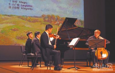 1月19日晚,中山市文化藝術(shù)中心迎來了2021年的首場“星期二音樂沙龍”,旅德青年鋼琴家黃翔、德國德累斯頓音樂學(xué)院小提琴獨奏博士溫慧明和德國大提琴家亞歷山大·蘇萊曼三位優(yōu)秀的演奏家,由他們組成的室內(nèi)樂組合——HWS鋼琴三重奏為觀眾帶來一場充滿浪漫和音樂智慧的古典樂盛宴。