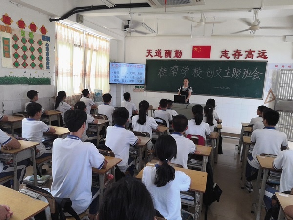 為扎實推進創(chuàng)建全國文明城市工作,踐行社會主義核心價值觀,構(gòu)建和諧校園,2020年7月8日,桂南學(xué)校各班級開展了主題為“告別陋習(xí),走向文明”的創(chuàng)文主題班會。