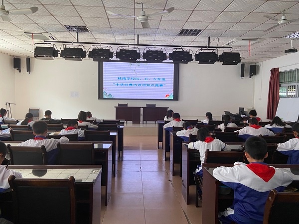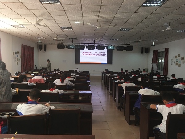 為提高學(xué)生對(duì)語(yǔ)文學(xué)科的學(xué)習(xí)興趣,激發(fā)學(xué)生學(xué)習(xí)積累古詩(shī)詞的熱情,使學(xué)生養(yǎng)成多讀書(shū),多感悟的好習(xí)慣,同時(shí)考查學(xué)生對(duì)應(yīng)掌握古詩(shī)文的積累情況,桂南學(xué)校小學(xué)部本學(xué)期開(kāi)展了“潤(rùn)澤少年 書(shū)香校園”古詩(shī)詞積累活動(dòng)。