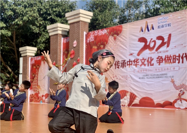 堅(jiān)定文化自信,樹立民族精神。為進(jìn)一步傳承中華民族傳統(tǒng)文化,營造書香校園,豐富學(xué)生校園文化生活,營造向真、向善、向美的校園文化藝術(shù)氛圍,12月29日下午,桂南學(xué)校開展了以“傳承中華文化 爭做時(shí)代新人”為主題的慶元旦文藝匯演活動。