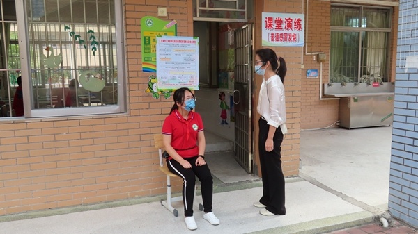 第二個(gè)預(yù)設(shè)場(chǎng)景是課堂演練,模擬課堂上學(xué)生出現(xiàn)身體不適、有發(fā)熱、嘔吐和輕微咳嗽癥狀的處置流程。第三個(gè)預(yù)設(shè)場(chǎng)景是課間演練,模擬課間活動(dòng)的情景,對(duì)學(xué)生進(jìn)行課間活動(dòng)指引。第四個(gè)預(yù)設(shè)場(chǎng)景是飯?zhí)醚菥殻M師生就餐的情景,對(duì)師生就餐秩序進(jìn)行指引。第五個(gè)預(yù)設(shè)場(chǎng)景是宿舍演練,模擬宿生出現(xiàn)咳嗽、發(fā)燒等癥狀的處置流程。