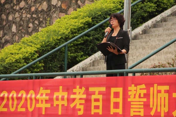 大會在莊嚴的國歌聲中拉開了序幕。學校負責人陳玉玲在國旗下做了語重心長而又振奮人心的講話。她首先從為什么要讀書講起,讓同學們明白讀書是為了求知,知識能改變生活,讀書就是為了能在國家需要我們的時候,我們有能力、有責任挺身而出。她鼓勵九年級全體師生以高昂的斗志,百倍的信心,堅定的意志,全身心地備戰(zhàn)中考。陳校長睿智親切的話語,讓師生們感受到學校領導的關懷與期待。