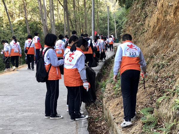 為繼續(xù)推進(jìn)志愿服務(wù)工作,提高學(xué)生的服務(wù)意識(shí)和服務(wù)能力,增強(qiáng)學(xué)生的環(huán)保意識(shí),2019年12月7日,五桂山學(xué)校團(tuán)委組織志愿服務(wù)者共計(jì)50余人,應(yīng)邀參加五桂山辦事處舉辦的以“不忘初心、牢記使命”守護(hù)五桂山為主題的清潔山野志愿服務(wù)活動(dòng),清理大尖山沿路垃圾,用實(shí)際行動(dòng)踐行保護(hù)生態(tài)環(huán)境的理念,同時(shí)向全社會(huì)倡導(dǎo)用行動(dòng)保護(hù)自然生態(tài)環(huán)境,不要亂扔垃圾和肆意破壞山上的花草樹(shù)木,守護(hù)五桂山。