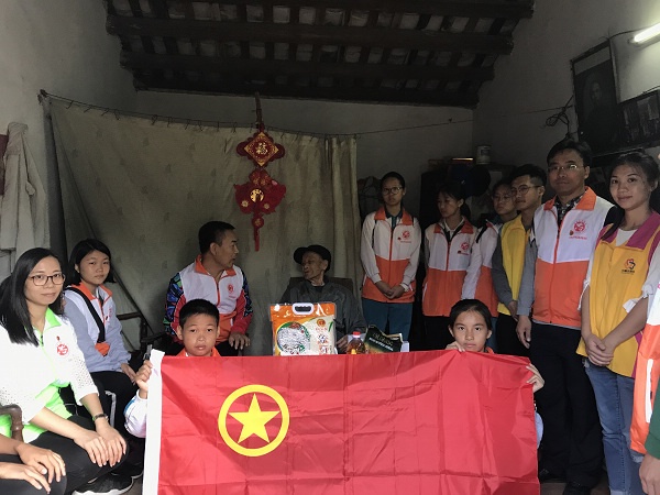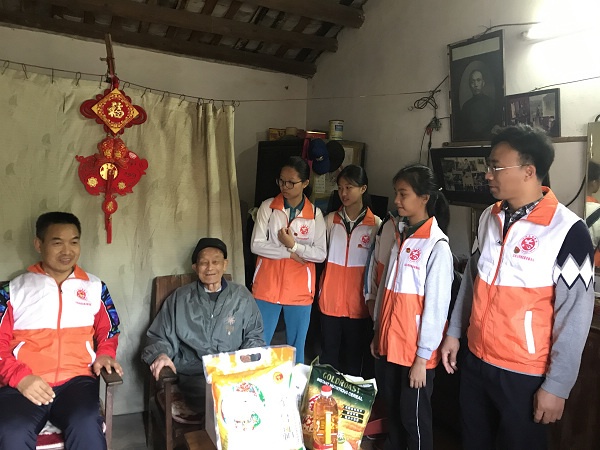 活動當(dāng)天,在五桂山辦事處團工委書記陳惠宜、五桂山辦事處團工委干事劉素貞、五桂山學(xué)校黨支部書記劉繼恭、五桂山學(xué)校中學(xué)部德育主任劉偉雄、五桂山學(xué)校團委書記馮銳強、團委委員鄧運良以及五桂山城管工作人員等的帶領(lǐng)下,慰問組一行二十余人分別慰問了家住石鼓村的老人、困難學(xué)生家庭共三戶,給他們送去了油、米、奶粉、麥片等慰問品。志愿者們先是來到了一家彭姓老人的家里,給老人送上了慰問品后,志愿者們和老人聊起了家常,詢問老人的生活情況、身體狀況,了解老人的想法和需求,有些志愿者還給老人講解預(yù)防和處理突發(fā)事件的知識。大家有說有笑,特別是在學(xué)生志愿者的青春熱情的感染下,老人露出了喜悅的笑容。在征得老人同意的情況下,志愿者們分工合作,幫助老人掃地、拖地、擦窗、抹桌椅,大家團結(jié)協(xié)作、發(fā)揚不怕苦、不怕累、不怕臟的雷鋒精神,把老人家里家外打掃得干干凈凈、收拾整整齊齊。老人對志愿者們的辛勤付出表示感謝,并和志愿者們一起合照留念。之后,志愿者們走訪了兩家困難學(xué)生家庭,給他們送上了慰問品和關(guān)愛。