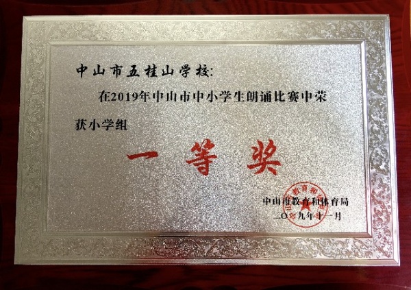 ——五桂山學(xué)校榮獲市朗誦比賽小學(xué)組一等獎(jiǎng)發(fā)布時(shí)間:2019-11-12 15:12 信息來源:本網(wǎng)站 瀏覽次數(shù):0