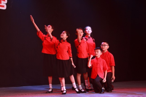 五桂山學(xué)校參賽的朗誦團(tuán)隊(duì)是由張湘麗老師組建的,均為六年級(jí)同學(xué),姚敏鳳老師則主要負(fù)責(zé)音樂、隊(duì)伍站姿變化的指導(dǎo)。從接到比賽任務(wù)開始,師生就上下齊心,共同努力。張老師經(jīng)過一番仔細(xì)的推敲,確定了誦讀篇目為《中華少年》。此后,師生便利用一切邊角時(shí)間進(jìn)行訓(xùn)練,午飯后、放學(xué)后都成了練習(xí)的寶貴時(shí)間?!鞍?!神州大地生長(zhǎng)的希望,我們是中華的少年……”五桂山學(xué)校小學(xué)部的大堂,每天都能看見朗誦隊(duì)員們英姿颯爽的身影,都能聽到朗誦隊(duì)員那蕩氣回腸的聲音,那是五桂山學(xué)子對(duì)國(guó)家感人肺腑的禮贊,那是中華少年對(duì)祖國(guó)刻骨銘心的熱愛。這背后也飽含了指導(dǎo)老師的努力,家長(zhǎng)們的支持。從演出服裝的購(gòu)買到每天放學(xué)的接送,家長(zhǎng)們毫無怨言,大力支持學(xué)校的工作,正是這一份份的支持,一分分的努力,一點(diǎn)一滴的刻苦,成就了比賽的最高榮譽(yù)——一等獎(jiǎng)。