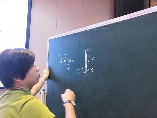 活動(dòng)伊始,菊城小學(xué)的語(yǔ)文科組長(zhǎng)凌老師分享了菊城小學(xué)語(yǔ)文科組在教研方面的特色經(jīng)驗(yàn)。講座以《固本培元、回歸本真、創(chuàng)新形式、打造特色》為主題展開,邏輯清晰思路縝密。凌老師分別從教研思路、團(tuán)隊(duì)建設(shè)與教學(xué)管理、特色教研與課堂、示范交流活動(dòng)促發(fā)展四個(gè)方面介紹了科組在日常教學(xué)教研中的具體做法。梁麗蘭老師則為與會(huì)的老師介紹菊城小學(xué)低年級(jí)書寫指導(dǎo)的策略,并現(xiàn)場(chǎng)示范教學(xué)書寫的要點(diǎn)。兩位老師精心準(zhǔn)備的教研內(nèi)容令全體在座老師獲益良多。