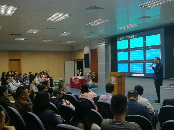 3月12日晚,教務處劉主任在校資訊室為初中學生家長詳細介紹了高中課程設置以及英文水平要求。F.2升F.3時,學校將根據(jù)家長以及學生的升學意愿重新組織編班,包括中考班和國際班,其中國際班將無縫對接高中雅思、劍橋國際等高中高級學歷課程,為將來直升國際名校打下堅實基礎。F.3升高中時,學生更可以根據(jù)自己的英文水平以及升學意向,選擇不同的升學渠道,包括國際班與國內聯(lián)考班。