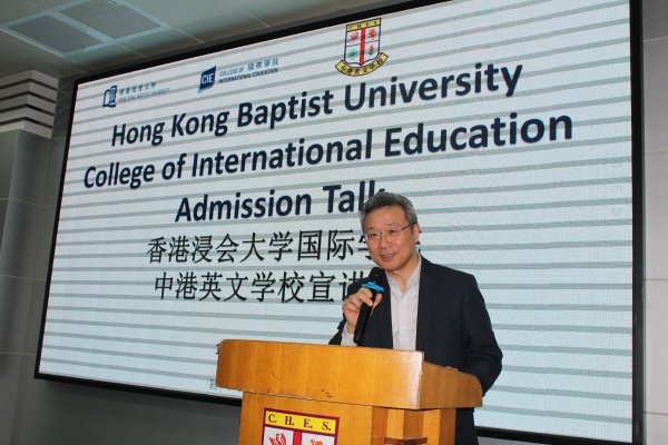 當(dāng)日下午,在蔡國贊博士、劉朝榮校長等校領(lǐng)導(dǎo)以及中港學(xué)生大使的陪同下,鐘志杰院長一行首先參觀了中港校園。接下來,在校資訊室舉行的香港浸會大學(xué)國際學(xué)院宣講會上,校董事長蔡國贊博士代表學(xué)校對鐘志杰院長等領(lǐng)導(dǎo)的到來表示歡迎,對香港浸會大學(xué)長期以來對中港學(xué)子的關(guān)心、支持和幫助表示感謝。鐘志杰院長稱贊中港始終與國際先進教學(xué)理念保持同步,堅持不懈推進國際交流,并對學(xué)校致力于培養(yǎng)具有國際競爭力人才的辦學(xué)理念、豐富精彩的校園文化以及豐碩的教育成果給予了高度認可與評價,同時歡迎更多的中港學(xué)子選擇香港繼續(xù)完成自己的求學(xué)理想。最后,香港浸會大學(xué)國際學(xué)院副總監(jiān)林非恩博士詳細介紹了香港浸會大學(xué)國際學(xué)院的相關(guān)資訊與錄取條件,部分家長與F.6全體同學(xué)參與了此次宣講會。