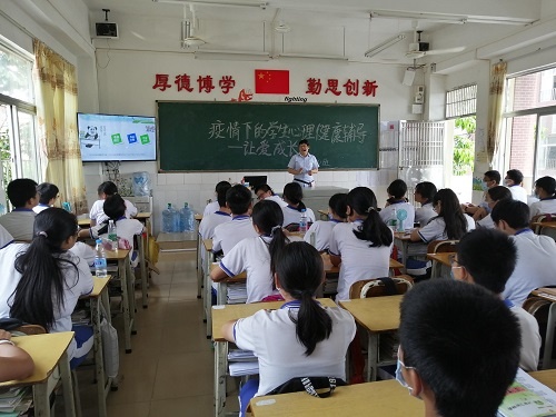 為了加強(qiáng)疫情期間學(xué)生心理健康輔導(dǎo)工作,提高學(xué)生防控意識(shí),引導(dǎo)學(xué)生以積極心態(tài)面對(duì)疫情,學(xué)會(huì)如何在疫情狀態(tài)下保護(hù)好自己和家人,2020年5月25日下午,桂南學(xué)校中學(xué)部開展了以“疫情下的學(xué)生心理健康輔導(dǎo)——讓愛成長(zhǎng)”為主題的心理健康班會(huì)課。