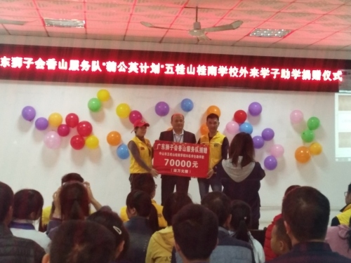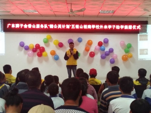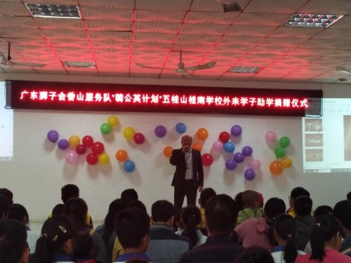 2019年12月27日下午3:30,廣東獅子會香山服務(wù)隊來到桂南學(xué)校,在桂南學(xué)校大會議室舉行了“‘蒲公英計劃’五桂山桂南學(xué)校關(guān)愛外來學(xué)子助學(xué)”活動。參加本次捐贈儀式的有廣東獅子會香山服務(wù)隊的10位獅兄獅姐、桂南學(xué)校中學(xué)部阮仕斌校長以及桂南學(xué)校35名受資助學(xué)生和家長。