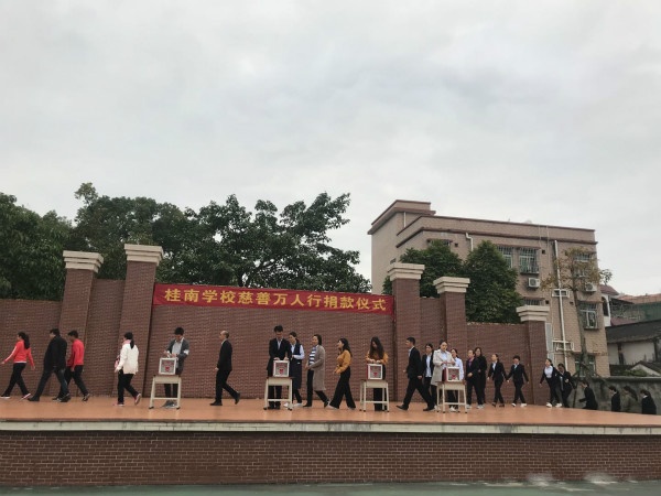 在上一周,總部余建校長向全體教職工發(fā)出了慈善萬人行捐款活動的倡議,讓大家都行動起來,發(fā)揮桂南學校博愛的精神,人人都獻出一點愛,用自己的綿薄之力去回報社會,去幫助社會上有困難的人。