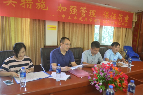 督導組一行采取實地察看、查閱檔案資料、師生座談、問卷調(diào)查等形式,對學校“師生成長共同體”建設、“德育月”活動、學校升旗儀式、主題班(隊)會、社會主義核心價值觀教育落實、經(jīng)典誦讀、校園德育文化建設、德育工作檔案、班級文化及校園、走廊文化建設等情況進行細致、認真地督導檢查,龍泉學校德育負責人鄭國輝主任,在會議室就目前學校規(guī)模、自查情況及德育工作亮點等方面的情況,向神灣鎮(zhèn)各德育領導做了詳細的匯報。在座的領導聽取鄭主任的匯報后,并依據(jù)依據(jù)中山市民辦學校德育工作督導評估細則,對龍泉學校的德育工作的各類檔案、資料等內(nèi)容進行了一一對照檢查和評估。
