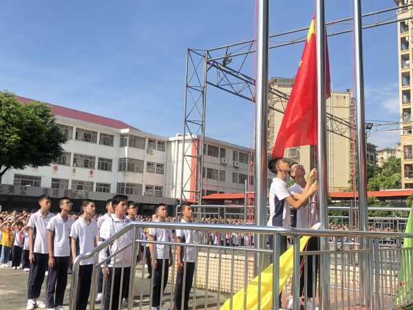 隨著激昂的國歌響起,五星紅旗冉冉升起,全體師生肅立注目,高唱國歌,向國旗致以崇高敬意。