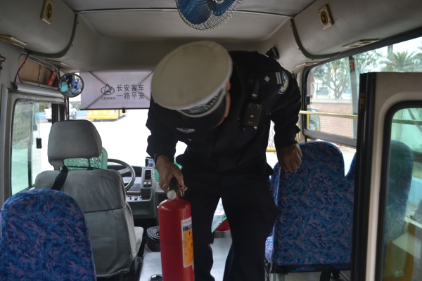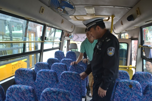 檢查中,五桂山交警大隊(duì)的黃蒂根警官對(duì)校車的滅火器、門窗安全鎖等保障安全的車輛設(shè)施、機(jī)件進(jìn)行了隱患排查;對(duì)校車行駛路線、駕駛資質(zhì)進(jìn)行排查;排查了校車在接送學(xué)生時(shí)是否存在超員、有無隨車看管人員、學(xué)生在乘坐校車時(shí)是否系安全帶等。接著,五桂山教育事務(wù)指導(dǎo)中心張方老師重點(diǎn)查閱了了各項(xiàng)校車管理檔案,對(duì)校車一車一檔資料、校車隨車?yán)蠋熞约榜{駛?cè)私逃嘤?xùn)情況、校車應(yīng)急逃生演練、學(xué)生的安全宣傳教育情況、校車日常養(yǎng)護(hù)、各項(xiàng)應(yīng)急預(yù)案、安全排查隱患、各項(xiàng)安全會(huì)議記錄,人車分流、校園車輛管理和停放等資料,進(jìn)行了詳細(xì)的查閱。